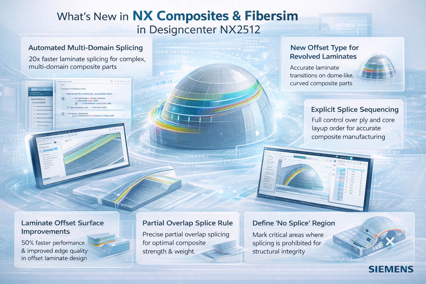 Một trong những cải tiến quan trọng nhất của Fibersim 2512 là Multi-Domain Splicing, cho phép:
