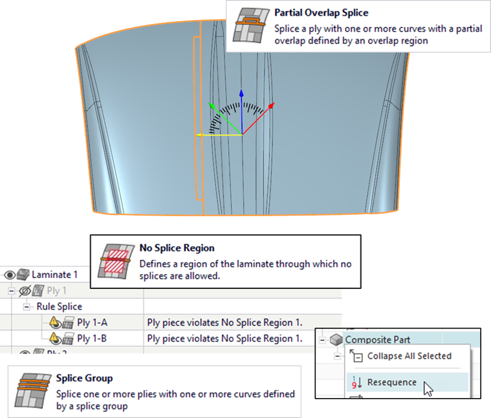 NX Composites 2512 tập trung mạnh vào tự động hóa splicing, giúp đơn giản hóa các workflow DFM cho composite hand layup:
