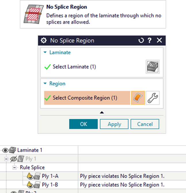NX Composites 2512 cho phép định nghĩa No Splice Region: