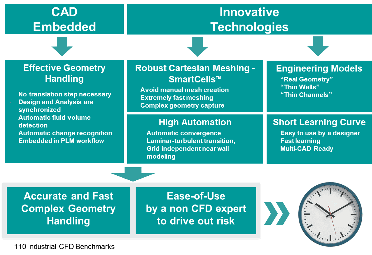Nhờ công nghệ SmartCellslưới bám theo hình học (Cartesian mesh), thời gian thiết lập và chạy mô phỏng nhanh hơn đáng kể so với phần mềm CFD truyền thống.