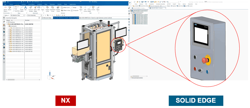 Với chức năng CAD direct thì người dùng Solid Edge có thể mở trực tiếp native files của NX để chỉnh sửa và tái sử dụng, ngược lại người dùng NX cũng có thể mở file Solid Edge để làm điều tương tự. Do đó sẽ hạn chế việc chuyển đối file trung gian giữa hai phần mềm, đảm bảo chất lượng thiết kế.